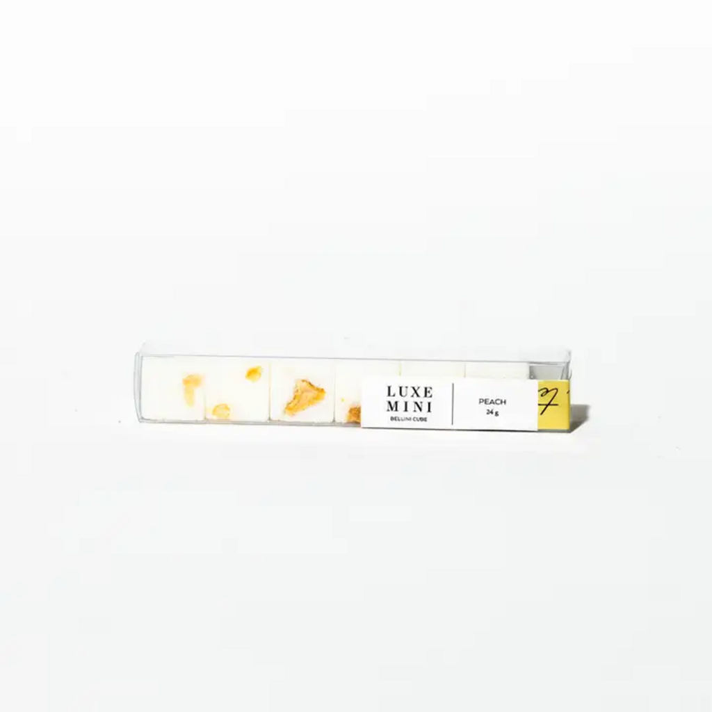 A sweet rendition of all natural peach with cane sugar that makes for the most exciting champagne experience! An all natural sugar cube, fused with sweet peaches and made locally. These cubes feature a captivating classic peach taste make an instant bellini in your champagne!