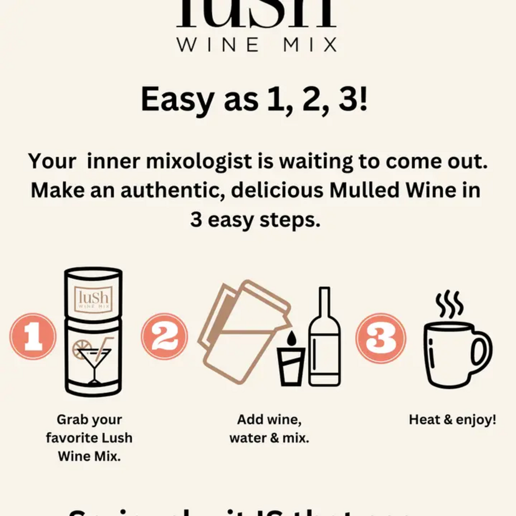 Make a traditional, delicious, Mulled Wine or AF (Alcohol-Free) Spiced Mocktail in just 5 minutes with Lush Spiced Wine! This winter and holiday favorite is "Christmas in a Cup!" Every vibrant & giftable canister is bursting with real foods. Real organic apples, spices, oranges, limes, and more. No other ingredients to buy, no mess, no work.